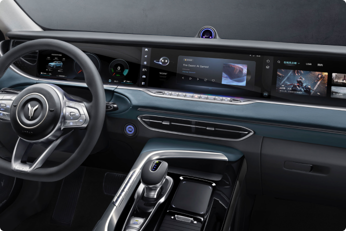 VOYAH FREE har verdens første trippelskjerm-løsning med en total skjermstørrelse på 1060 mm x 134 mm, hver skjerm er på 12,3’’ med touch-funksjon. Skjermene heves når bilen starter, og her har du alt du trenger for at reisen din skal bli best mulig.