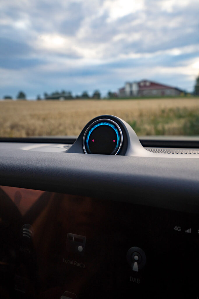 Panoramataket i VOYAH FREE kan dimmes. Det betyr at du kan justere det som du vil, og selv velge hvor mye eller lite lys du ønsker å slippe inn. Du kan for eksempel lukke igjen taket når solen skinner på sitt sterkeste på dagen, og åpne opp om natten slik at passasjerene dine kan studere stjernene.